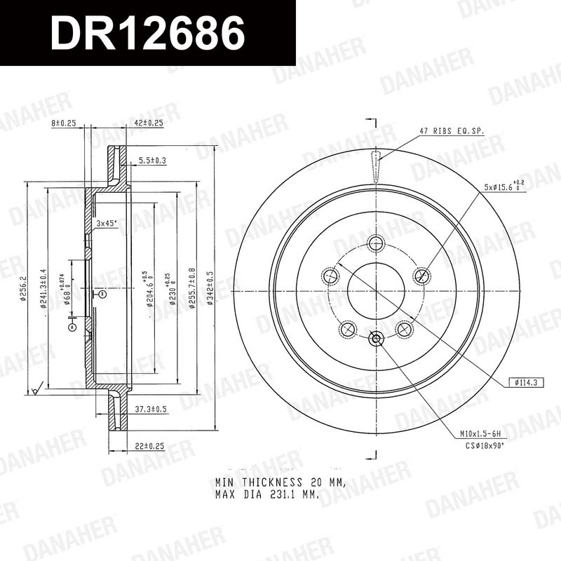 Толщина тормозного диска (мм) : 26