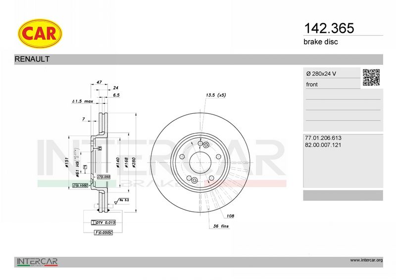 Тип тормозного диска : вентилируемый
