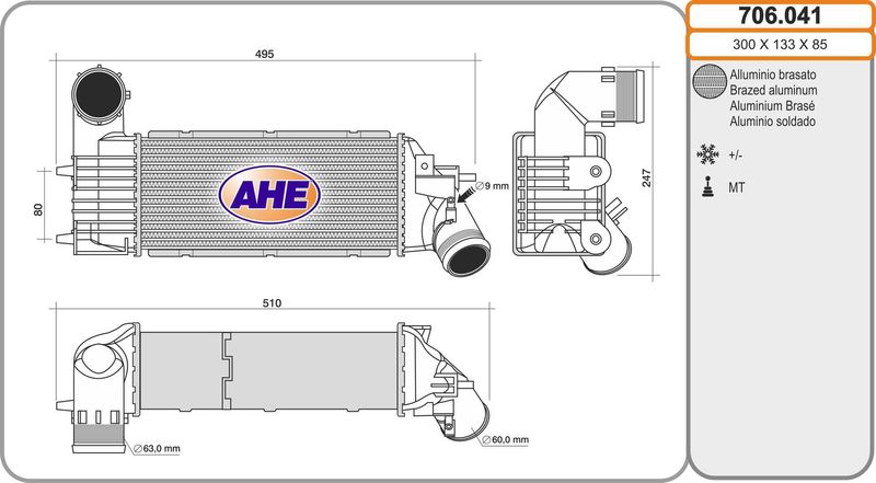 Размеры радиатора : 298x133.5x85