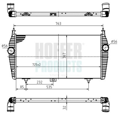 Размеры радиатора : 725 x 360 x 32 mm
