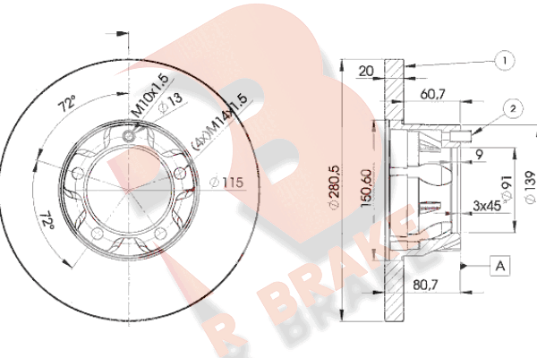 Тип тормозного диска : цельный