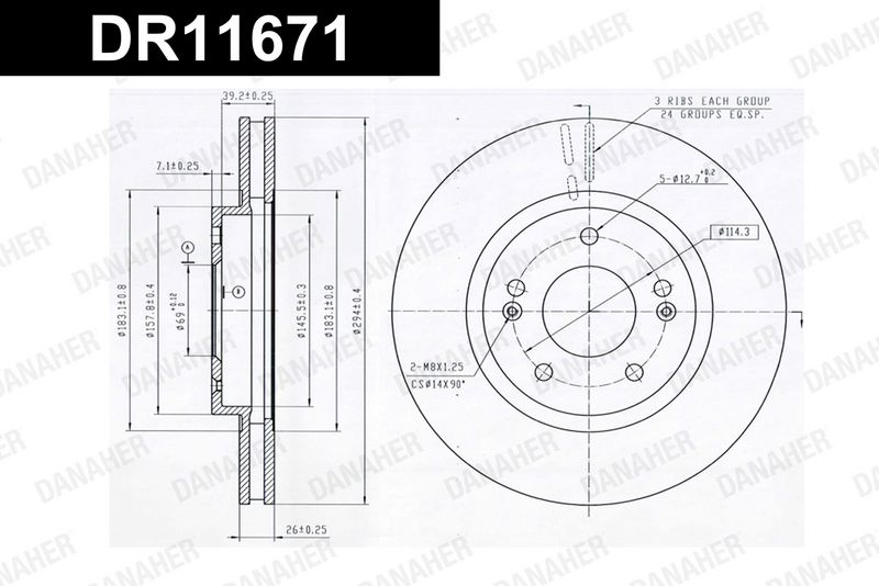 Толщина тормозного диска (мм) : 26