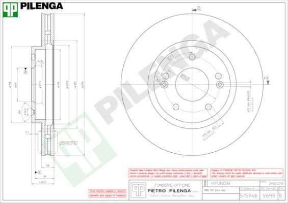 Расположение/число отверстий : 7/5