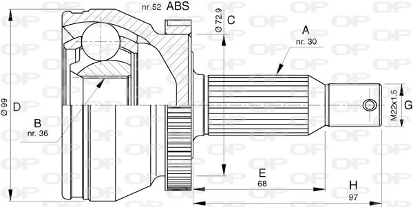Тип соединения / сочленения : Шарнир равных угловых скоростей