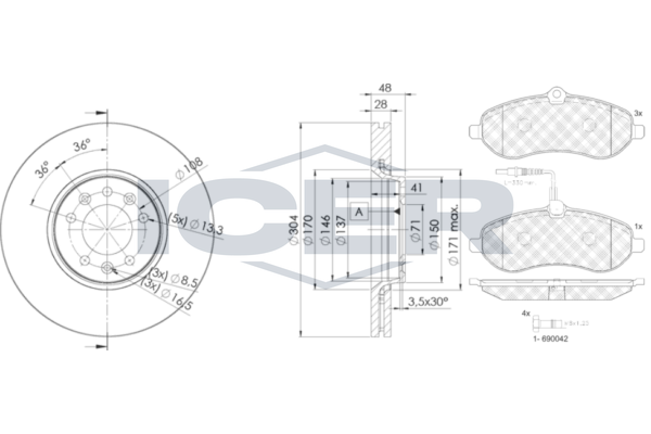 Толщина тормозного диска (мм) : 14