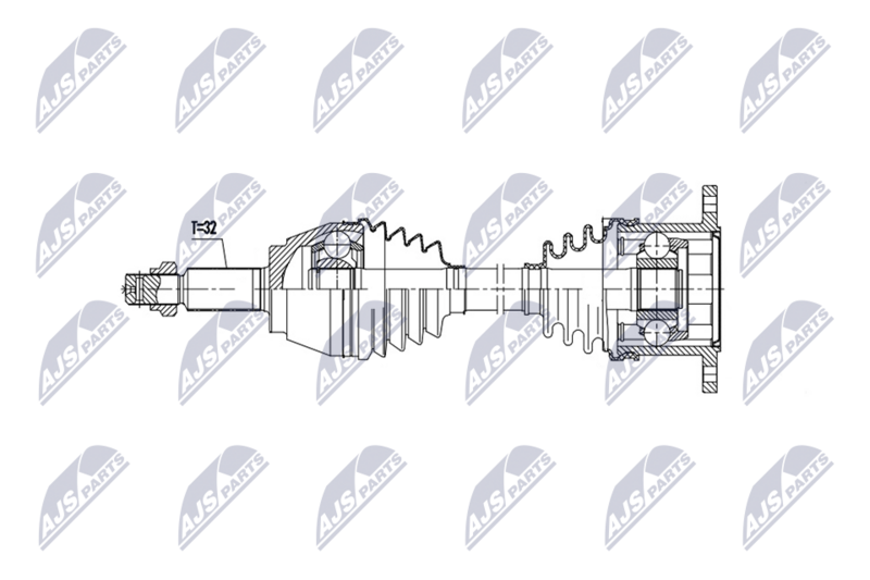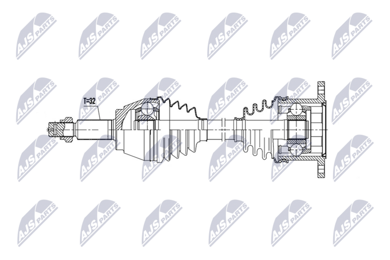 Сторона установки : Задний мост справа Вид коробки передач : Автоматическая коробка передач Внешнее зацепление со стороны колеса : 32 Длина [мм] : 721