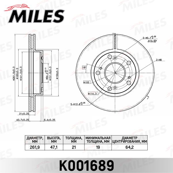 Толщина тормозного диска (мм) : 21