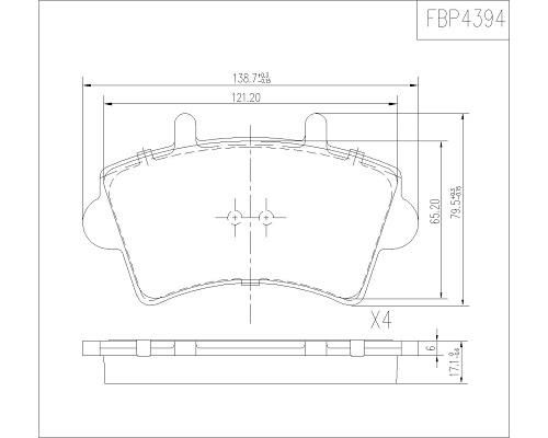 Количество тормозных колодок : 4