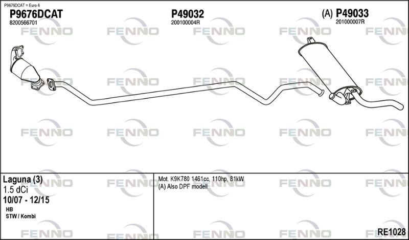 MODELS RENAULT LAGUNA III (BT0/1) 1.5 dCi (BT00, BT0A, BT0T, BT1J) Глушитель в сборе
