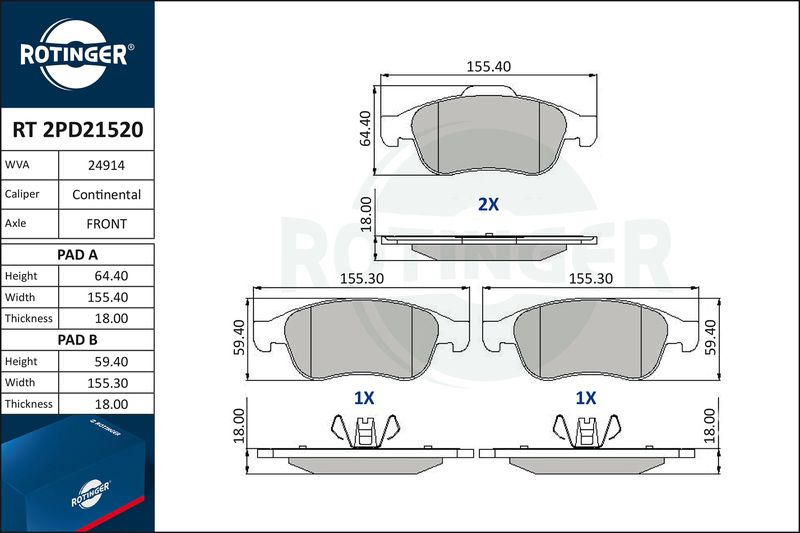 Количество тормозных колодок : 4