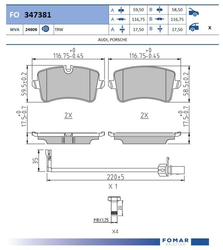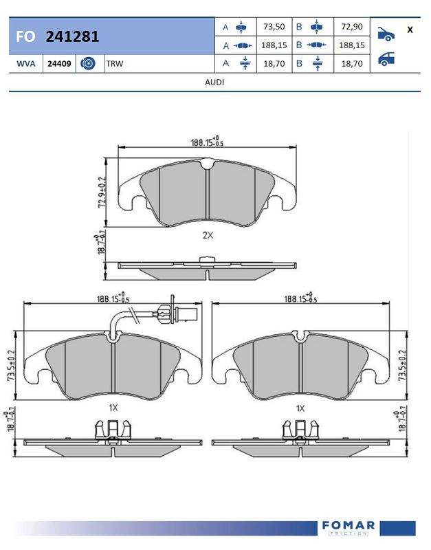 Количество индикаторов износа [на мост] : 1
