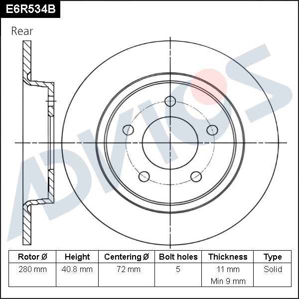 Толщина тормозного диска (мм) : 11