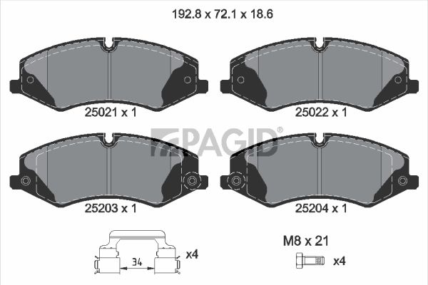 Количество тормозных колодок : 4