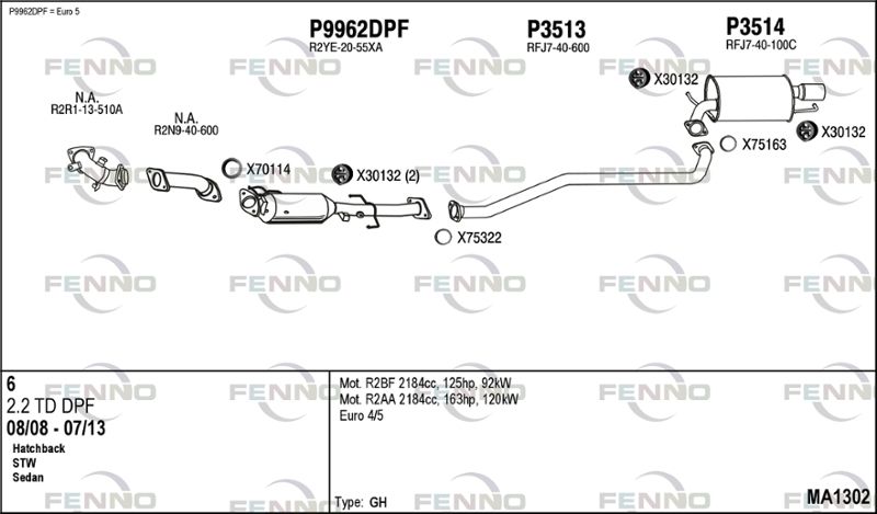 Норма выхлопных газов : Euro 4 / Euro 5 Дата производства от : 08/08 Дата производства до : 07/13