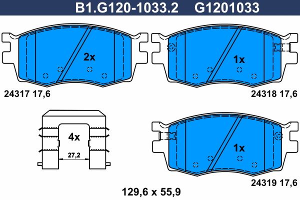Количество тормозных колодок : 4