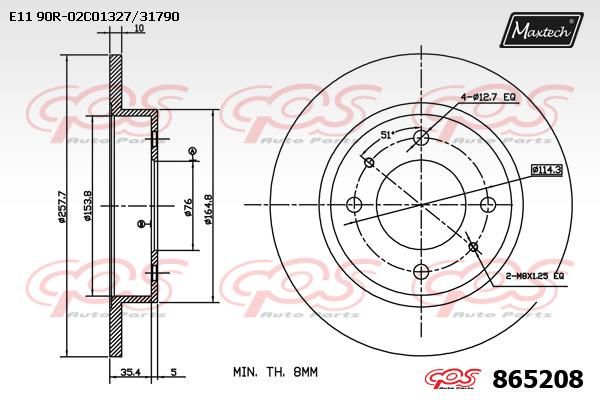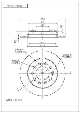 Толщина тормозного диска (мм) : 8