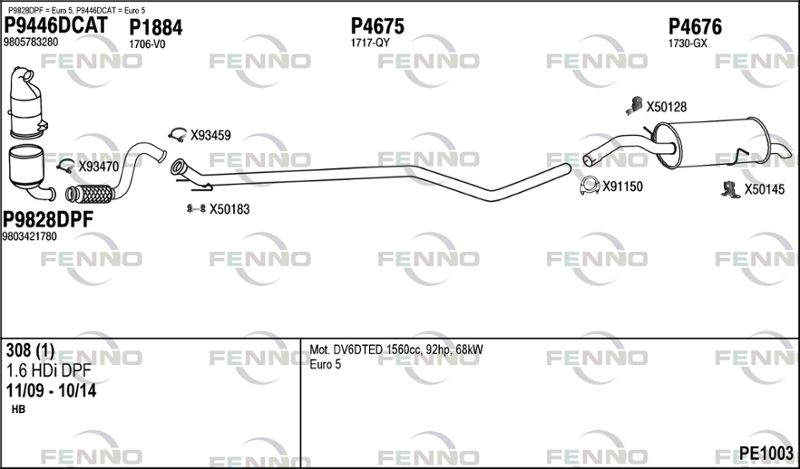 применимо для транспортных средств с года постройки : 11.2009 применимо для транспортных средств до года постройки : 03.2015 подходит для типа автомобиля : Хэтчбэк для двигателя № : 9HP для двигателя № : 9HR(DV6DTED для двигателя № : DV6C)