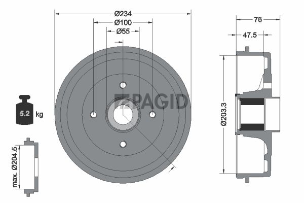 Внутренний диаметр тормозного барабана [мм] : 203,3