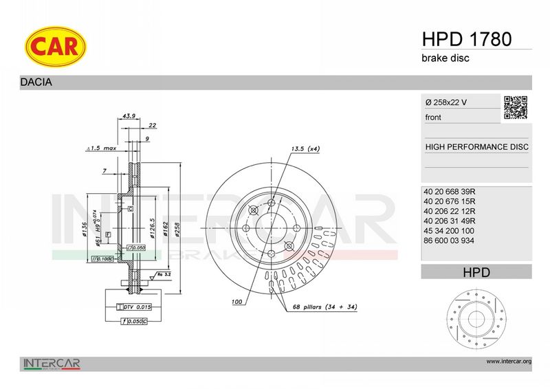 Тип тормозного диска : перфорированный