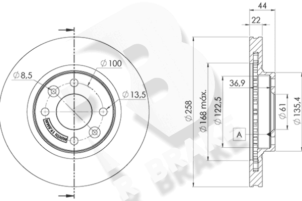 Толщина тормозного диска (мм) : 22