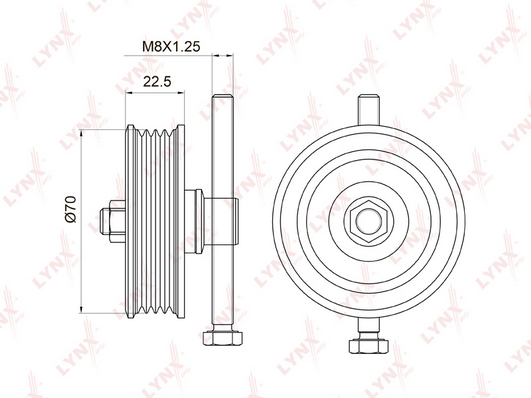 Диаметр [мм] : 70 Ширина [мм] : 22 Приводимый в действие агрегат : Компрессор кондиционера