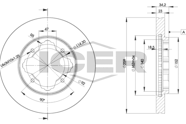 Размер резьбы : M10x1,25