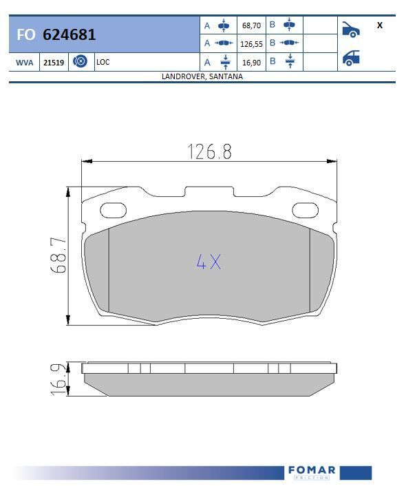 Количество тормозных колодок : 4