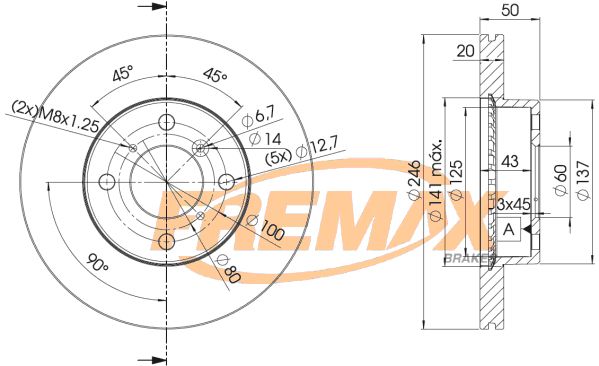 Толщина тормозного диска (мм) : 20