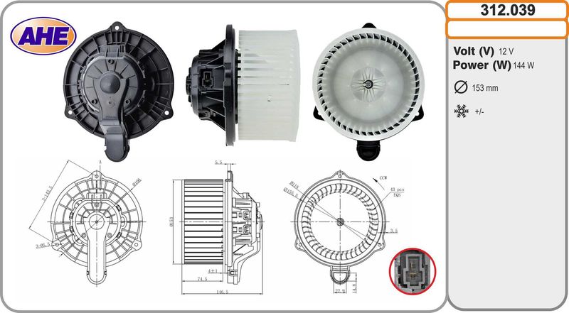 Диаметр крыльчатки вентилятора [мм] : 153