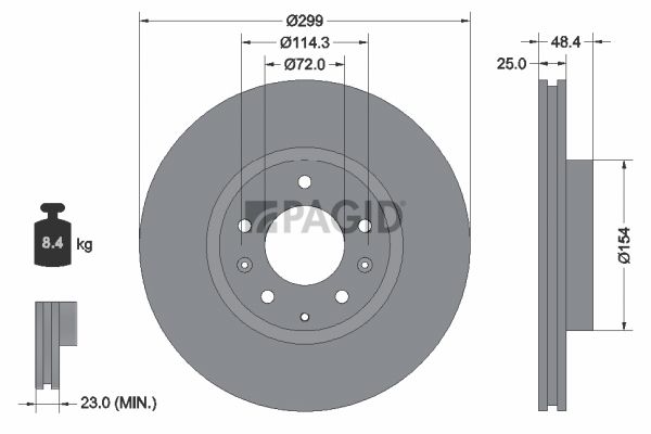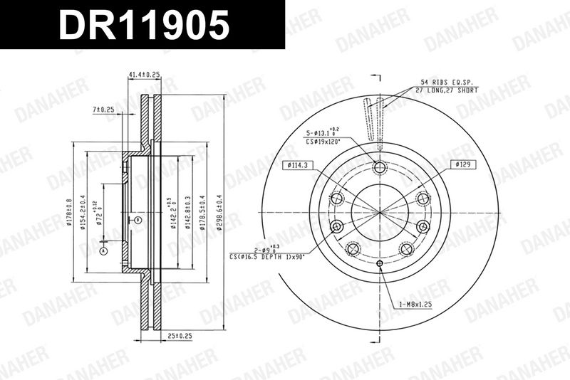 Толщина тормозного диска (мм) : 25