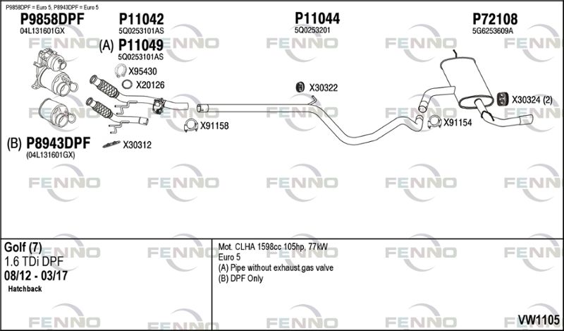 применимо для транспортных средств с года постройки : 08.2012 подходит для типа автомобиля : Хэтчбэк для двигателя № : CLHA Норма выхлопных газов : до Евро 5