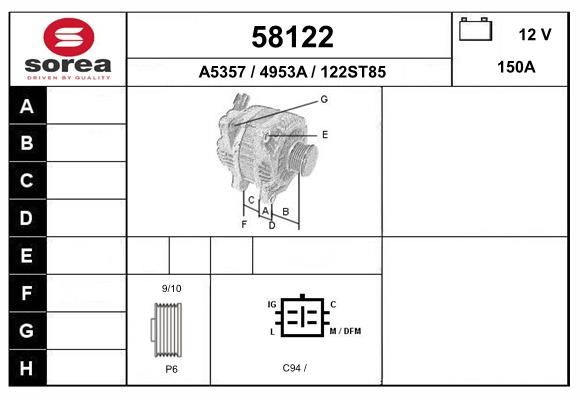 Модель бортовой сети : для транспортного средства с 12В бортовой сетью Напряжение [В] : 14 ток зарядки от генератора (А) : 150 Ременной шкив : со шкивом поликлинового ремня Количество ребер : 6 Ø шкива [мм] : 52 Клемма : B+ M8 Идентификационный номер исполнения штекерного разъема : L /D /COM /FR