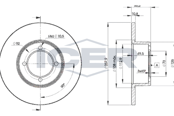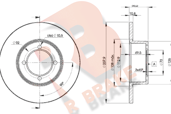 Толщина тормозного диска (мм) : 10
