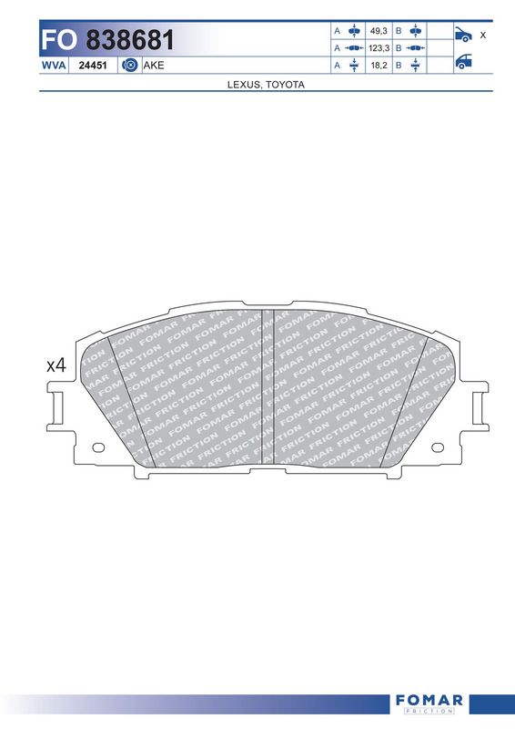 Количество тормозных колодок : 4