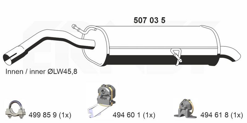 Длина [мм] : 1 100 Вес [кг] : 6,952 Сторона установки : сзади