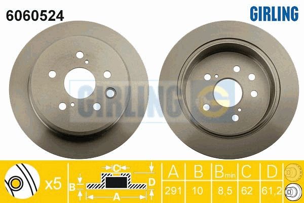 Число отверстий в диске колеса : 5