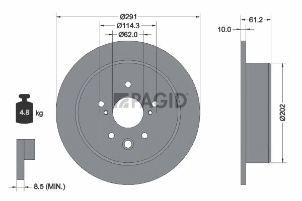 Минимальная толщина [мм] : 8,5