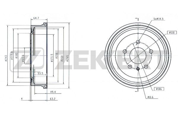 Наружный диаметр тормозного барабана [мм] : 265,2