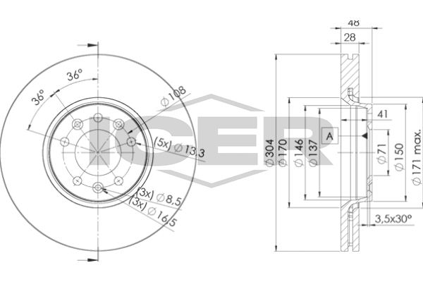 Расположение/число отверстий : 8/5