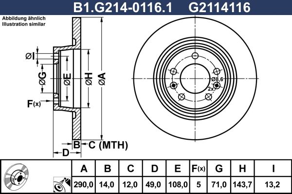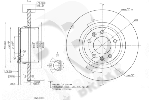 Толщина тормозного диска (мм) : 14