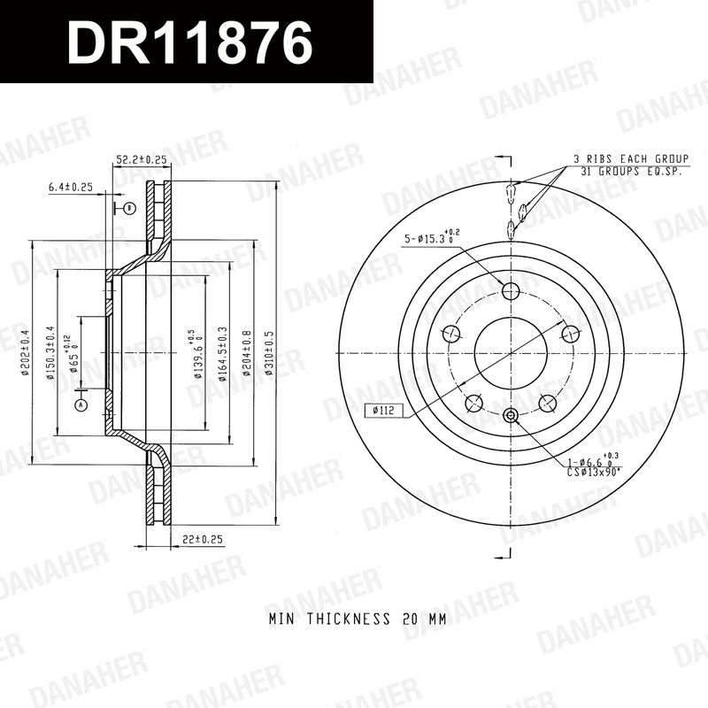 Толщина тормозного диска (мм) : 22
