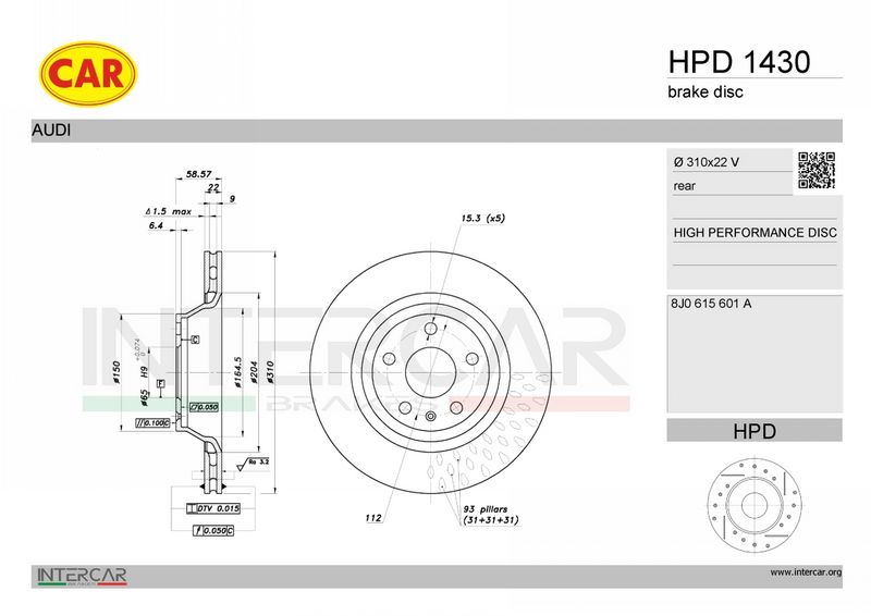 Тип тормозного диска : перфорированный