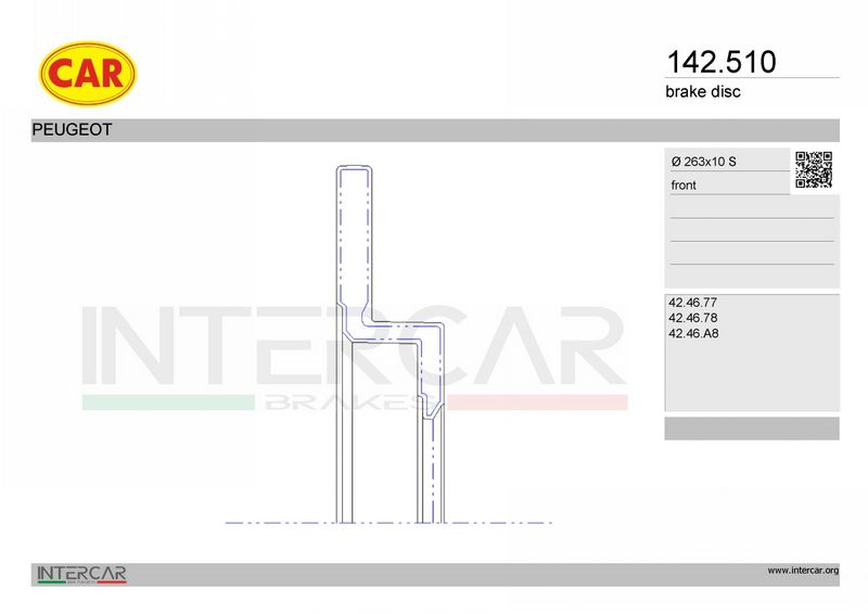 Сторона установки : передний мост Тип тормозного диска : цельный Толщина тормозного диска (мм) : 10 Наружный диаметр [мм] : 263 для оригинального номера : 4246A8