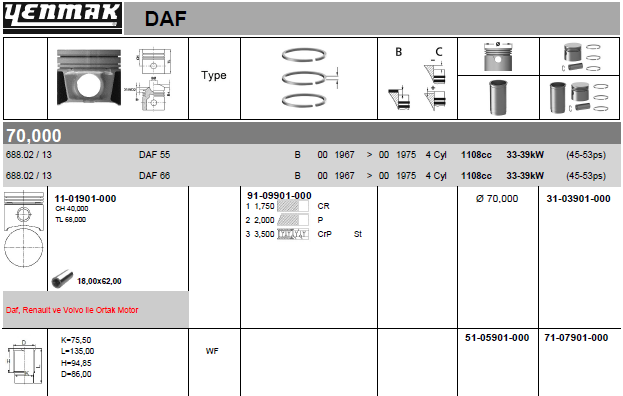 Версия : Includes seals Диаметр цилиндра [мм] : 70 номер компонента : 14-636730-00DL номер компонента : 87-334600-00DP