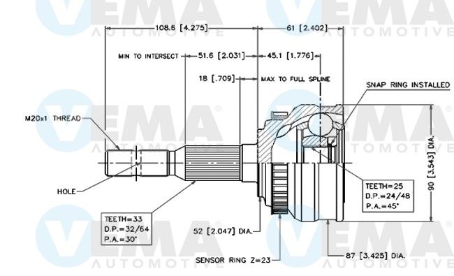 Тип соединения / сочленения : Шарнир равных угловых скоростей