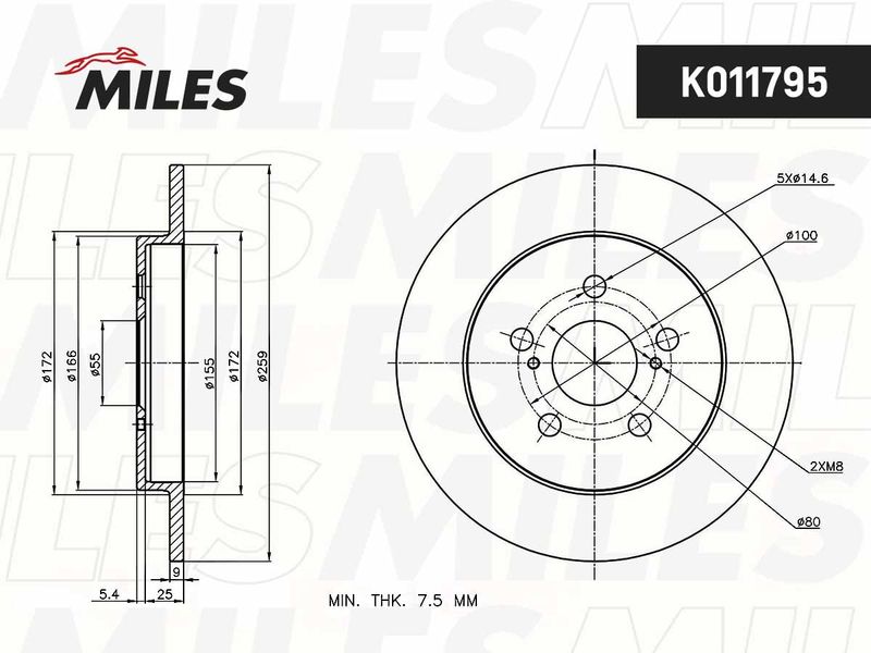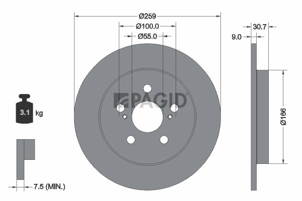 Толщина тормозного диска (мм) : 9