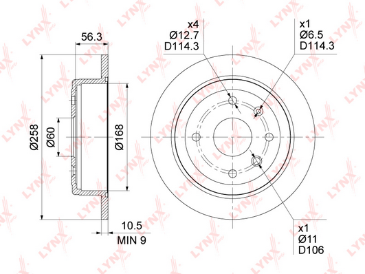 Толщина тормозного диска (мм) : 10,5