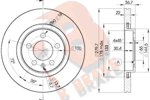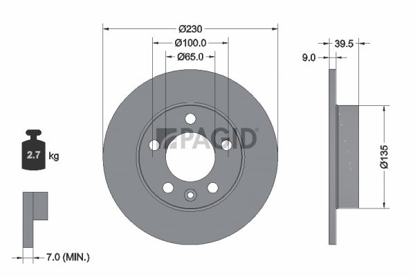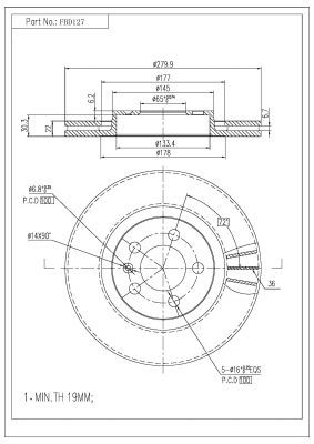 Тип тормозного диска : цельный