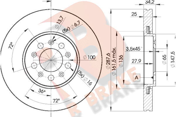 Расположение/число отверстий : 6/5