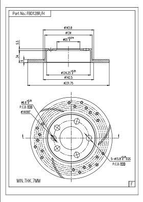 Расположение/число отверстий : 7/5